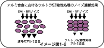 当社の大きな技術の1つであるウルトラSZ物性処理とは、極低温処理(クライオ)や電磁界処理などの、マテリアル本来の物理的特性を変化させ、曲げストレスや熱によるストレスを排除しながら、用途に合わせた特性に変化させる、非常に高度かつユニークな当社オリジナルの物性処理を言います。 この処理をする事により、ケーブルに関しては図1-1の様に分子クラスター構造が非常に均質化し、電子の流れにスムーズな効果 をもたらします。また図1-2のようにウルトラSZ物性処理によって均質化されたアルミ合金は、外部からの悪影響となる高周波ノイズや電磁界ノイズを大幅に低減させ、他に悪影響となる誘導を防ぐことが出来ます。 素材自体のキャラクターが極限に少なくなり、ケーブル系はもちろんの事、振動系にも有利な処理といえます。 ケーブルや内部配線、コンセント、プラグなど全てにこのウルトラSZ物性処理を施しております。また、コンセントパワープレートやスーパーバリアータップの航空機グレードアルミ合金にもこのウルトラSZ処理を施しています。 また、この技術は耐久性と環境変化に対し厳しい強度を要求するロケット、人工衛星などの宇宙開発にも役立っています。