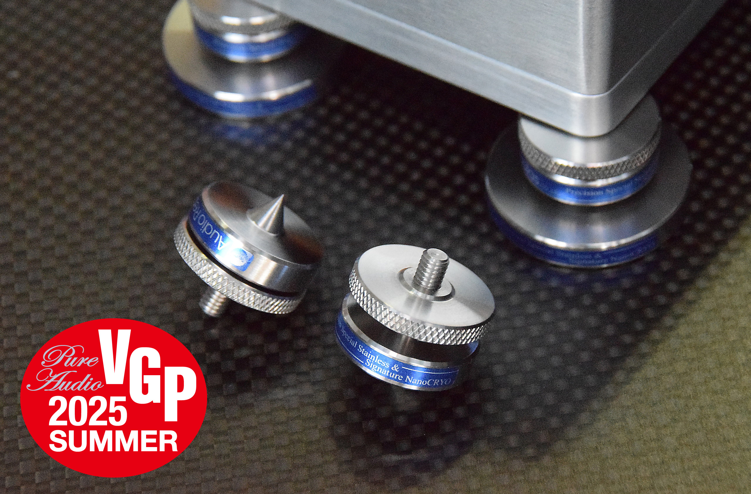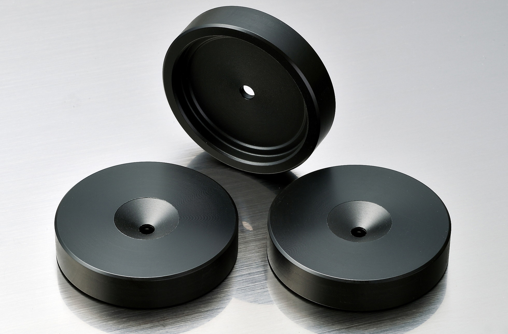 削りだし特殊ステンレスと、特殊な物性処理などを行うことで、ステンレス独特の音調を排除し音速を各周波数帯域ごとに均一化することに成功。スパイク受けとしての傷防止だけでなく、音質に非常に重要な箇所でスピード感溢れるハイエンドなサウンドを実現できます。